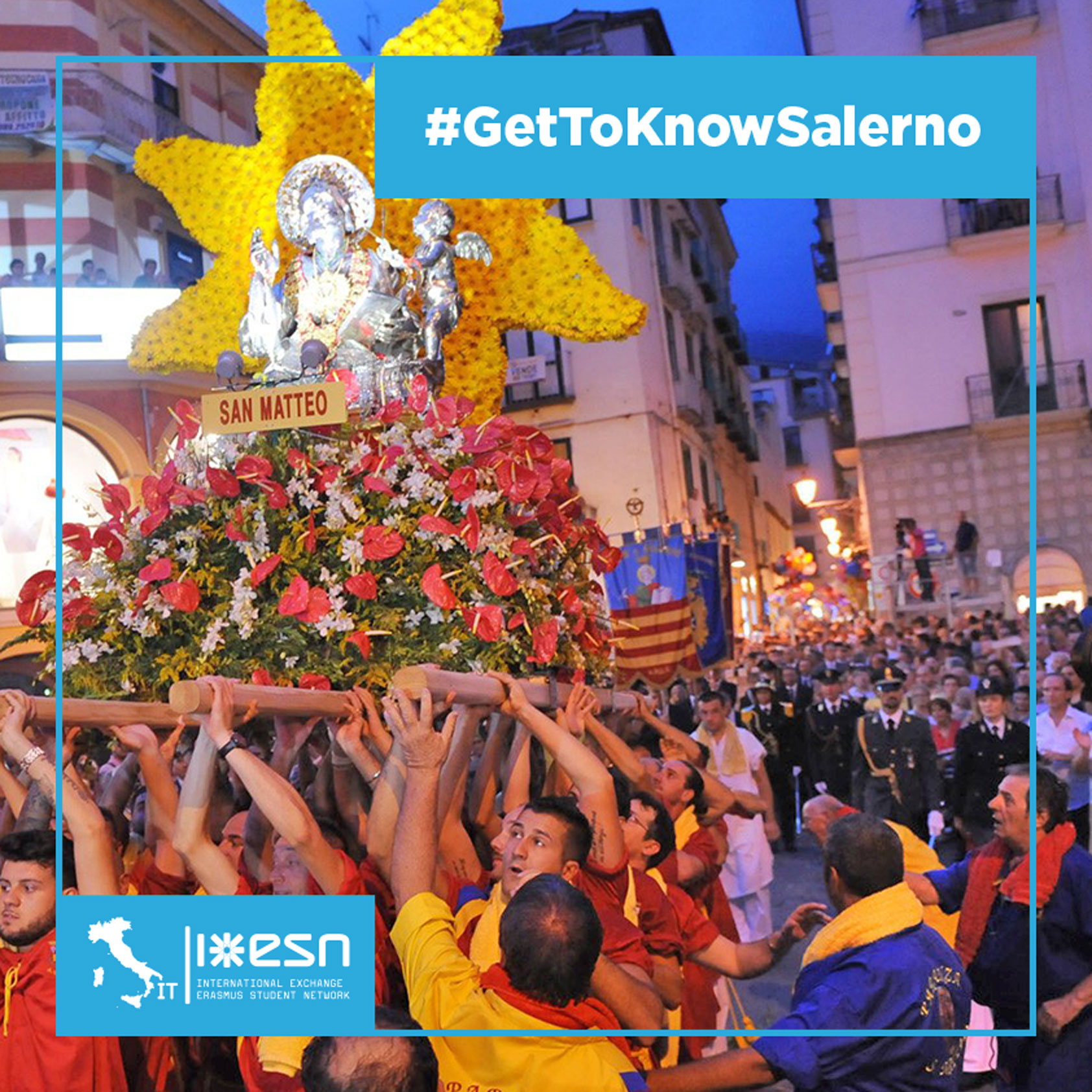Il 21 settembre, giorno più importante e più atteso dai salernitani, si svolge la festa vera e propria in onore di S. Matteo, con una processione che attraversa il centro storico, percorre Corso Vittorio Emanuele, scende per Via Velia, per poi sfilare lungo Via Roma fino alla chiesa dell’Annunziata, e rientrare infine, su Via Mercanti, fino al Duomo. Aprono la processione le tre statue d’argento dei Santi Martiri Salernitani, Anthes, Gaio e Fortunato, simpaticamente definiti dal popolo come le “tre sorelle” di S. Matteo.