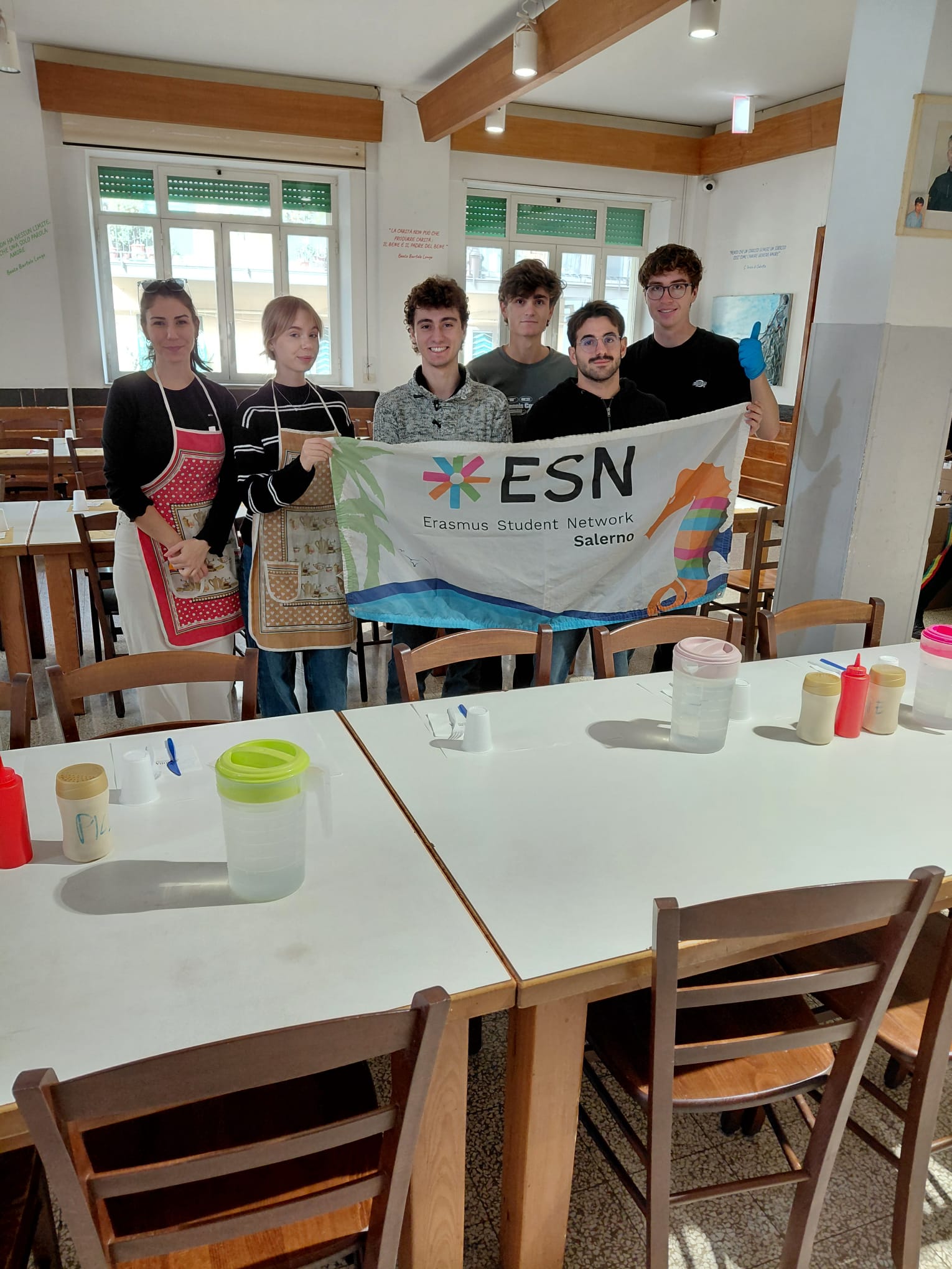 Lo scorso 8 novembre 2025 ESN Salerno ha organizzato una mattinata di volontariato presso la mensa dei poveri della città. L’iniziativa ha coinvolto un gruppo di cinque studenti internazionali, selezionati tra i primi iscritti al form di partecipazione.